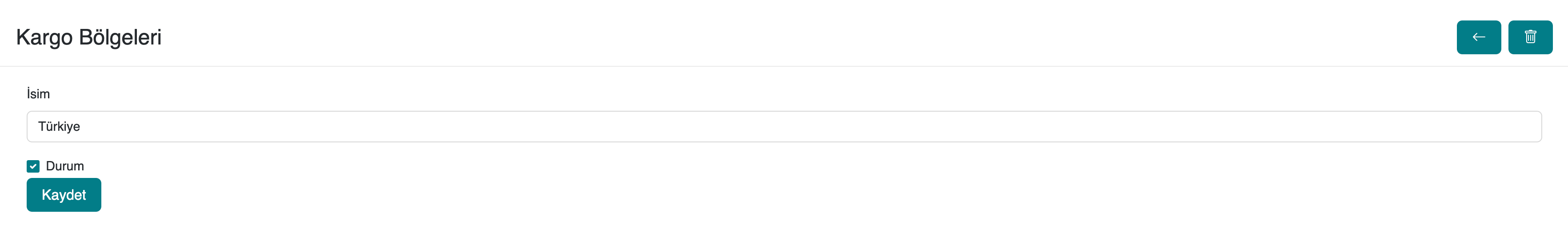 serB2B sisteminizde yeni kargo bölgesi oluşturmak için yönetici panelinden Ayarlar > Kargo Bölgeleri bölümüne gidin ve ardından sağ üst köşede bulunan + iconuna tıklayın.