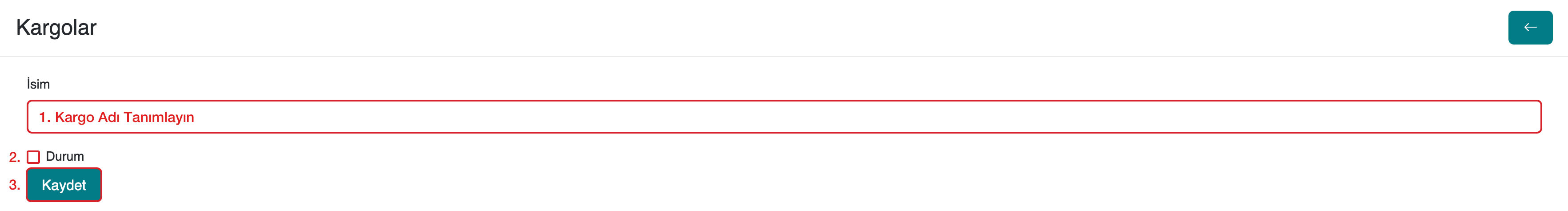 - Kargo Adı Tanımlayın: Yeni kargo tanımlaması yapın.