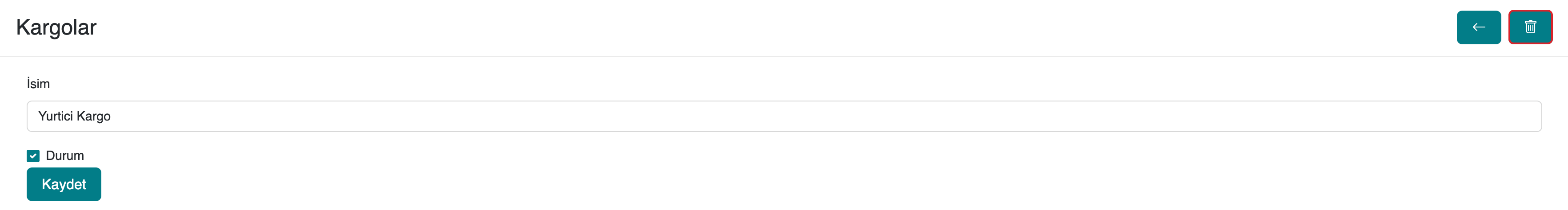 - Durum: Kargonun kullanılabilmesi için aktif edin.